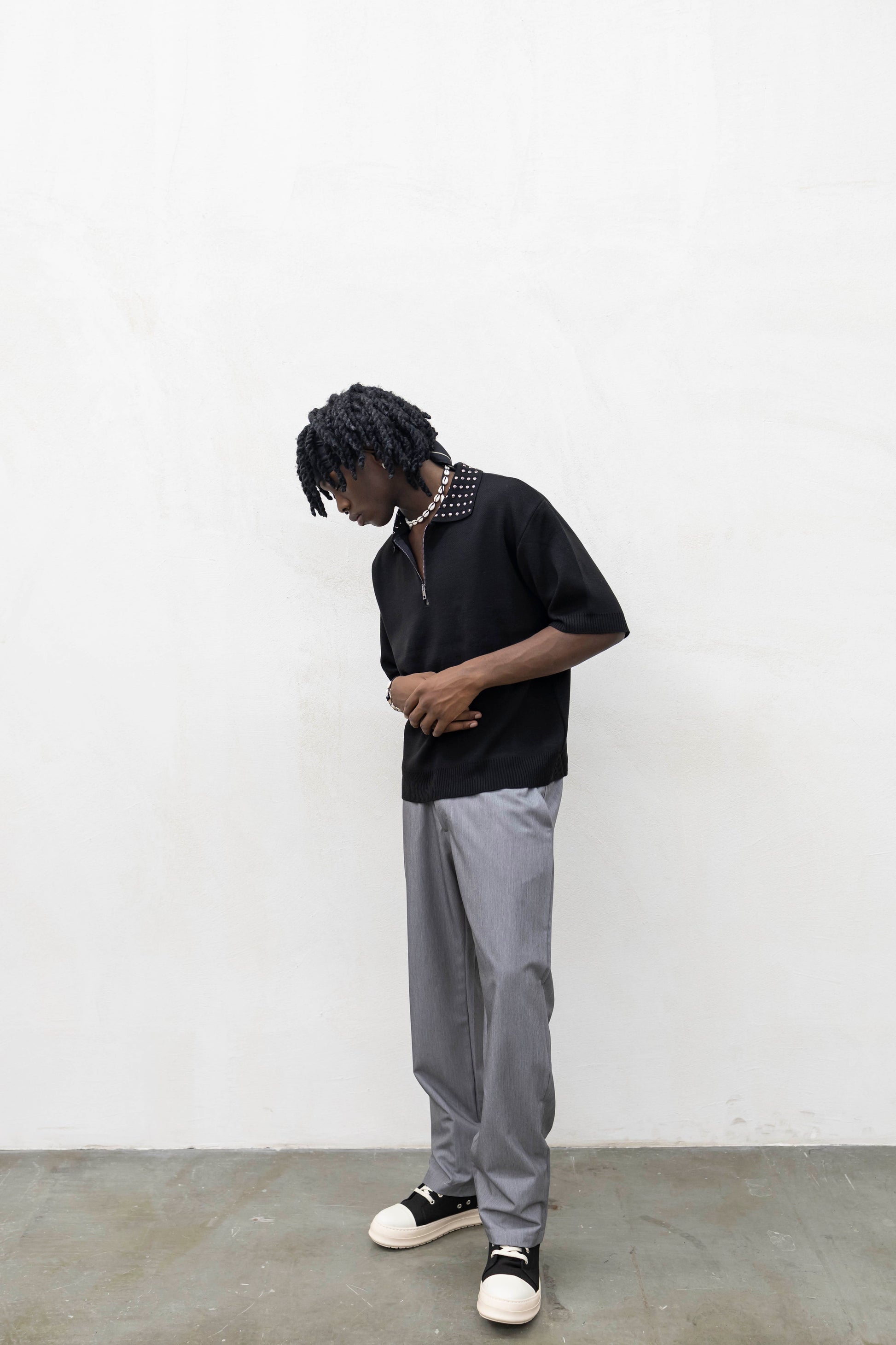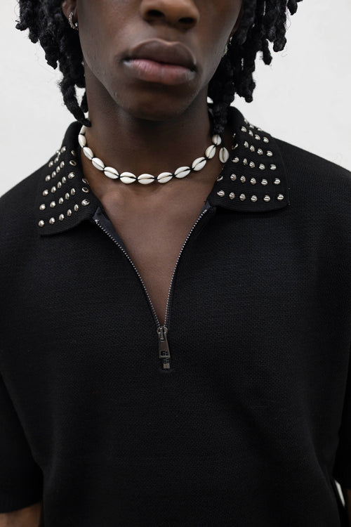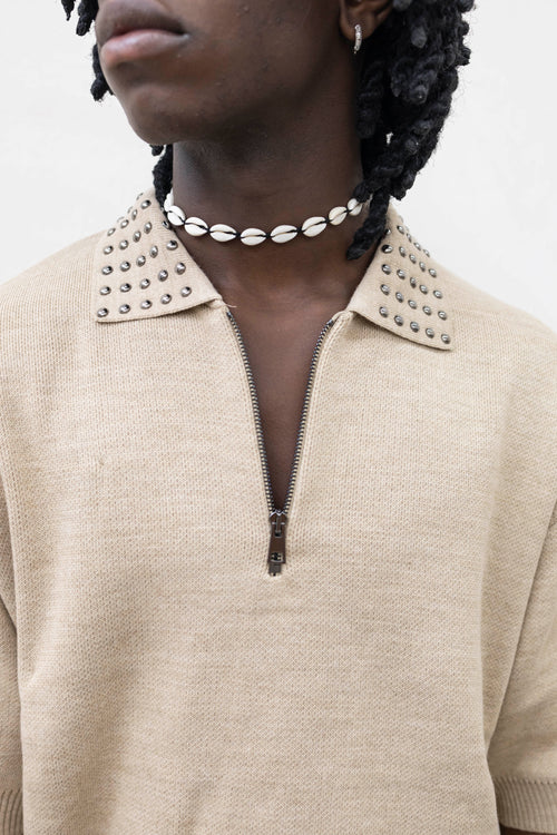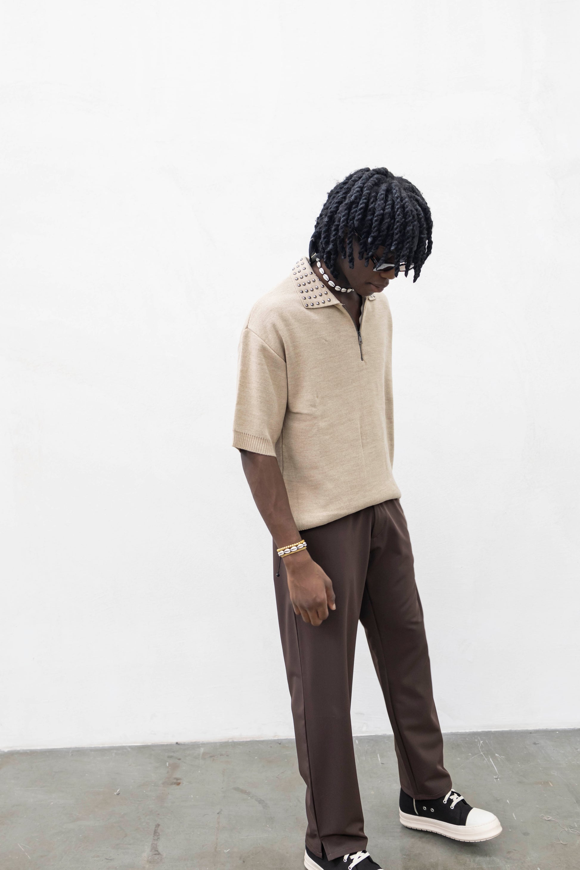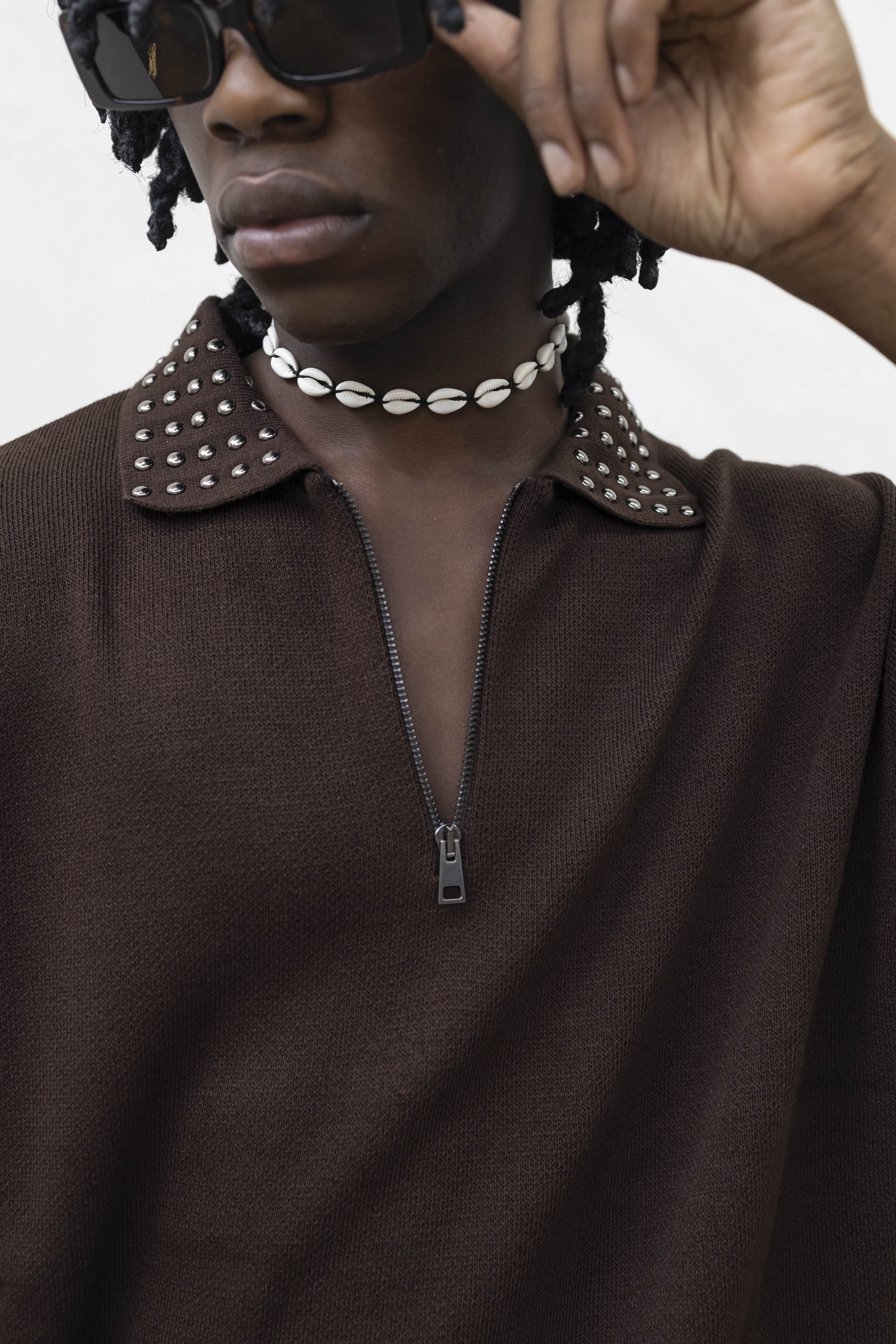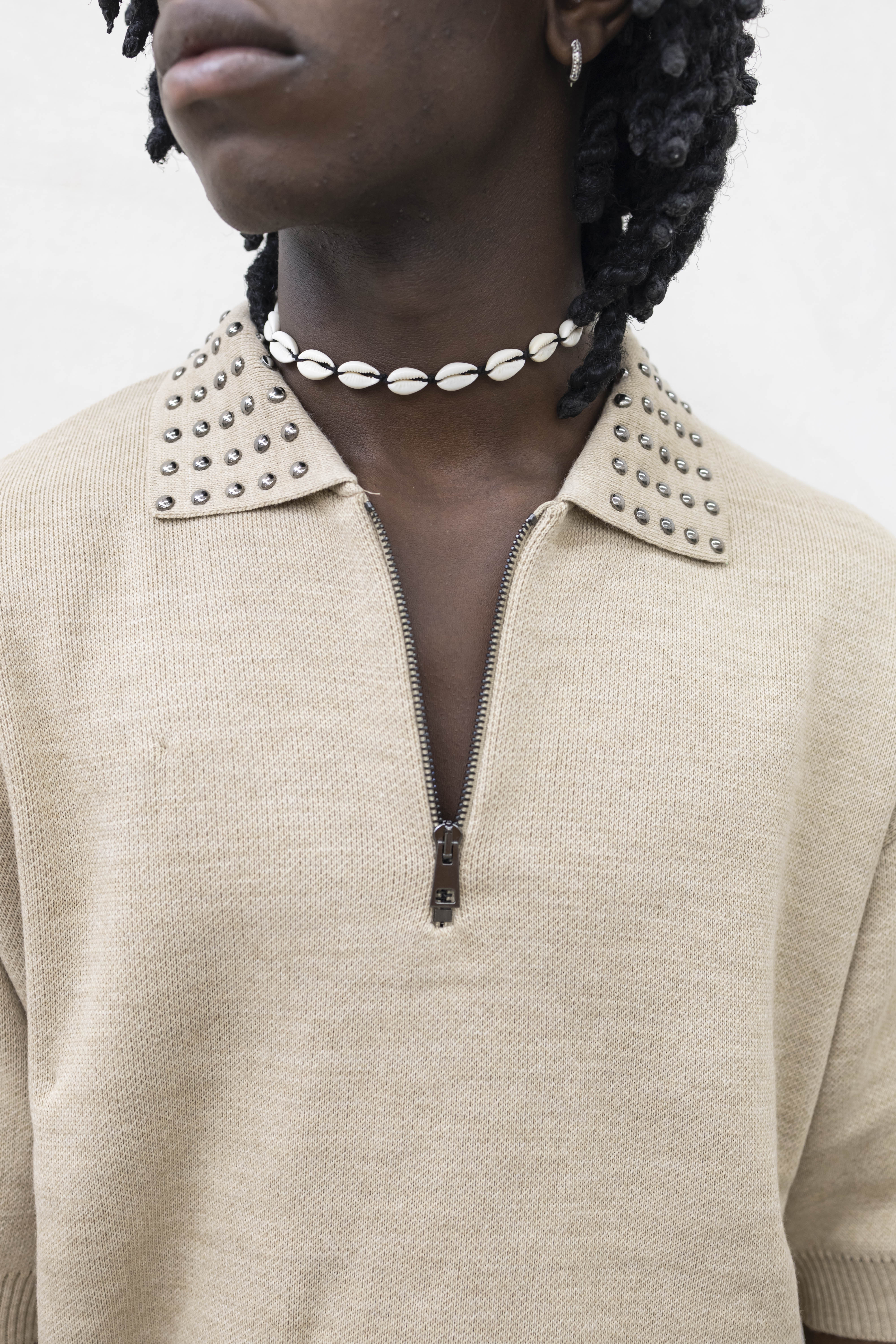 La polo zip con borchie è disponibile dalla S alla XL. E disponibile in 3 varianti di colore : nera,beige e moro. Vestibilità regolare e comoda.