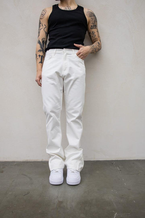 Vestibilità flare, gamba regolare, possibilità di allargare o stringere alla caviglia grazie alla zip.