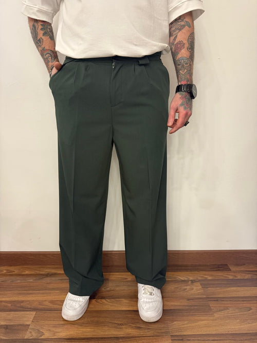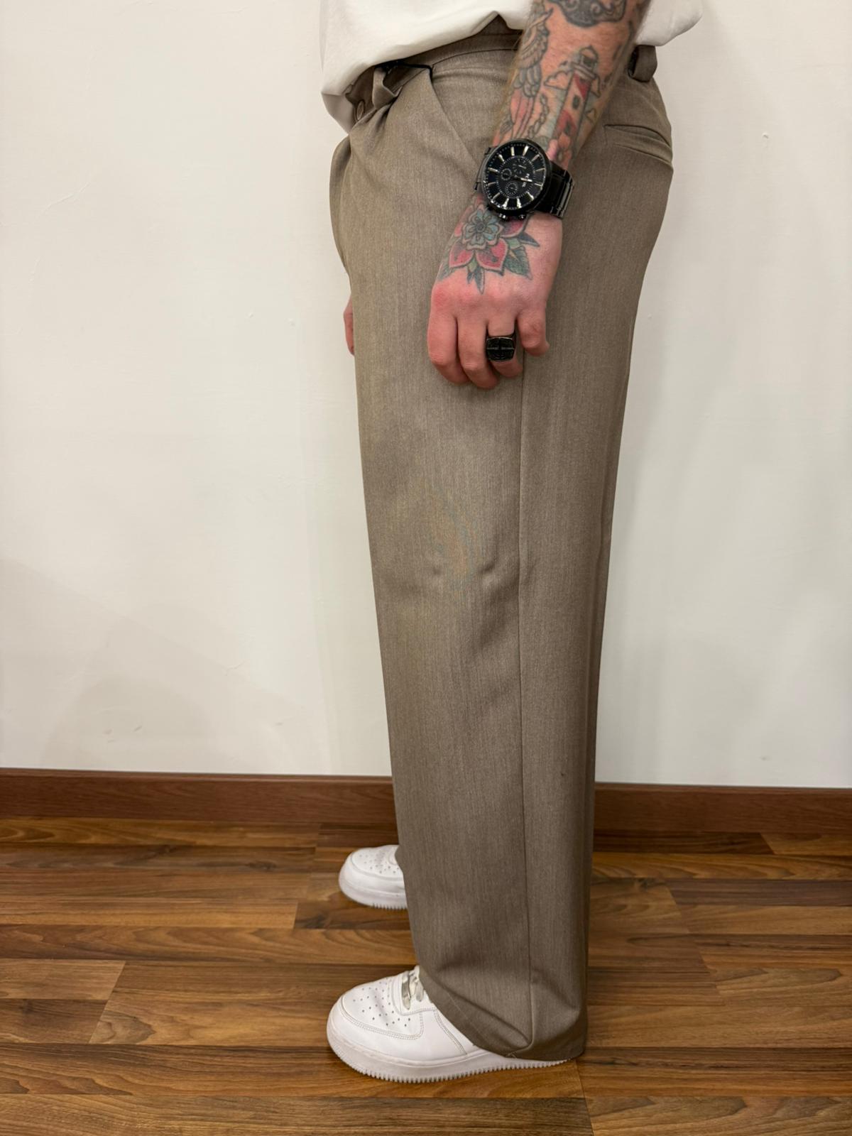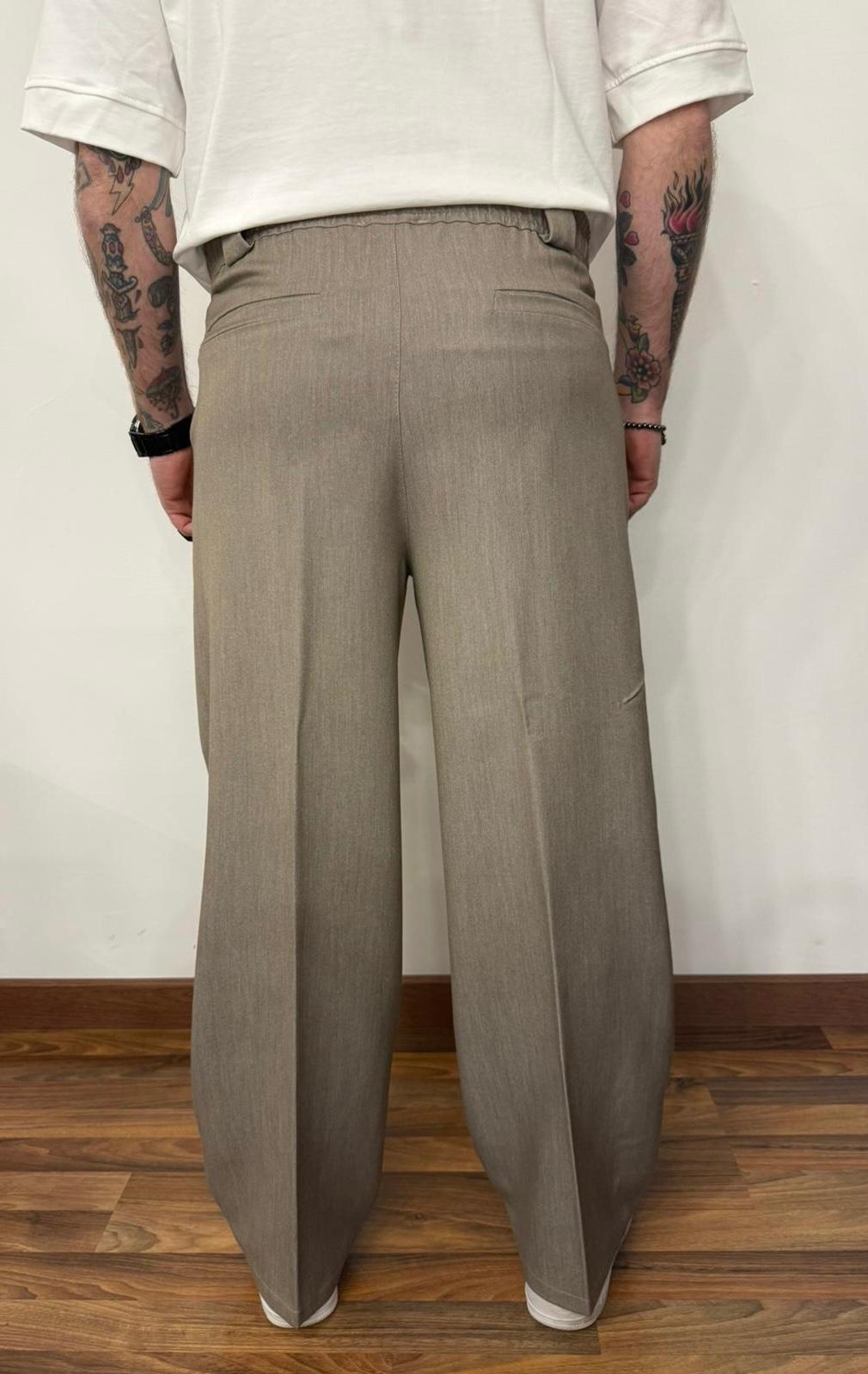 Vestibilità comoda con fondo ampio molla in vita chiusura con un bottone e zip.